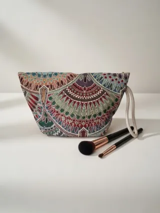 ¡Dale un toque artesanal a tu tocador o a tus viajes! ✨ Vendo este precioso neceser de tejido gobelino con un diseño étnico/geométrico vibrante. Es perfecto tanto para organizar tu maquillaje como para usarlo de "clutch" o bolso de mano ocasional gracias a su asa lateral. Detalles destacados: Material: Tejido de tapicería (gobelino) de alta calidad, muy resistente y con cuerpo. Diseño: Estampado de rombos y grecas en tonos terracota, azul y crema. Funcionalidad: Cierre de cremallera seguro y asa de cordón trenzado para llevar cómodamente en la muñeca. Estado: Impecable, a estrenar. Versatilidad: Ideal para brochas