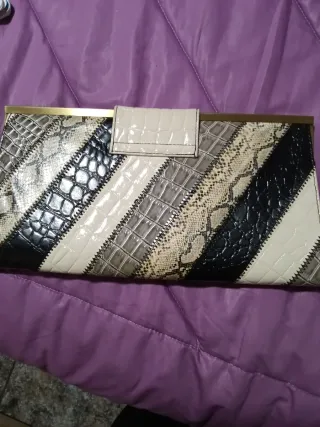 Elegante bolso de mano River Island con un diseño patchwork único.Ancho 31,5 .Alto 16,5.Cadena 37 cm - Combinación de texturas y estampados. - Detalle de hebilla decorativa con pedrería. - Cierre de solapa.