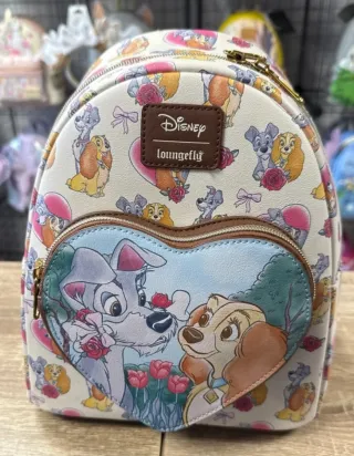 Mochila con estampado de Dama y el Vagabundo. - Diseño inspirado en la película de Disney. - Cierre de cremallera principal. - Bolsillo frontal con forma de corazón.