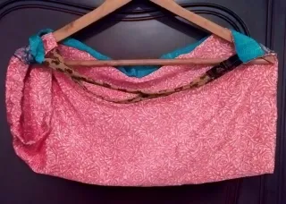 Este saco o mochila está hecho de seda india, con un diseño vibrante y llamativo. - Sin estrenar pero sin etiqueta. - Tejido de seda con estampado floral. - Estampado étnico decorativo en la parte superior. - Cierre superior mediante fruncido. - Sin rotos. - Sin defectos. - Esque tengo demasiadas cosas, incluidos los accesorios.