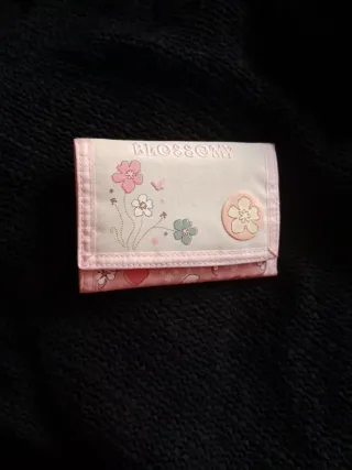 Monedero infantil con un bonito diseño de flores y mariposas. - Cierre de velcro. - Estampado floral. - Detalle de flor en relieve.