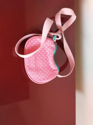 Adorable bolsito infantil con el diseño de Hello Kitty. - Estampado de lunares rosas. - Detalle de lazo con la cara de Hello Kitty. - Tiras ajustables.