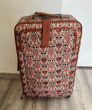 Maleta mediana con un llamativo estampado étnico en tonos naranjas y marrones. Alto: 66 Ancho: 40 Fondo: 21 - Diseño único y colorido. - Ideal para viajes. - Ruedas para facilitar el transporte.