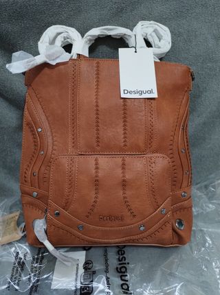 Mochila de la marca Desigual con un diseño único y detalles de costura. - Color marrón. - Adornos metálicos. - Cierre de cremallera. Compartimentos: Bolsillo para teléfono móvil, compartimento interior amplio Cierre: Cremallera Estampado: Unicolor Detalles: Remaches Ventaja material: Larga durabilidad Opciones de uso: Correa extraíble, varias opciones de transporte Número de artículo: DE151H227-O11