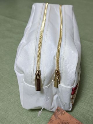 Neceser de tamaño pequeño con un bonito estampado floral. Es perfecto para llevar tus esenciales. Tiene dos apartados con cierre de cremallera. Medidas: ancho 18cm., alto 10cm., fondo 7 cm. - Diseño con flores y hojas en tonos rojos, azules y dorados. - Cremallera dorada. - Etiqueta de cartón adjunta.