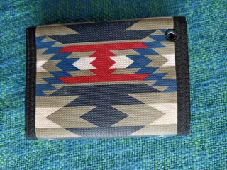 Monedero con un diseño geométrico llamativo. Es compacto y práctico para llevar lo esencial. - Cierre de solapa. - Detalle de cremallera exterior. - Estampado con líneas en zig-zag y rombos.