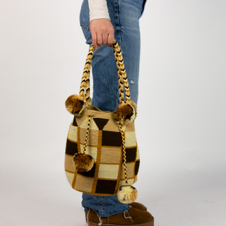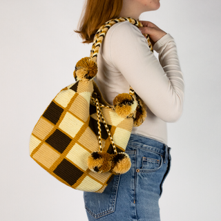 Las bolsas son tejidas a crochet a mano tradicionalmente por un pueblo indígena en el norte de Colombia. Cada bolsa que resulta es una pieza única individual. Las medidas son aproximadamente 28 x 20 cm, perfectas para guardar todo lo importante cuando estás en movimiento. La bolsa viene con una correa para el hombro de aproximadamente 90 cm de largo; alternativamente, también hay variantes con un asa corta para llevar en la mano.
