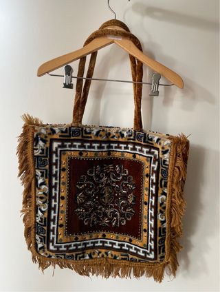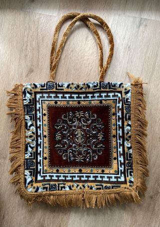Tote Bag de la marca caleña Del Mar Design Co., que crea diseños únicos por temporada. Viene con cierre superior, y en el interior tiene un bolsillo interno con cierre y otros dos compartimentos pequeños sin cierre. Viene con su bolsa en tela para protección. Lo vendo porque fue un regalo, pero no suelo usar bolsos grandes. Está nuevo. Es un artículo que no verás en ningún otro lugar. 🙂 Le he bajado el precio de 50€ a 40€, así que ya no puedo dar más descuento.