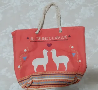 Capazo de gran capacidad con un divertido estampado. - Diseño con llamas y mensaje All You Need Is Llama Love. - Asas de cuerda. - Base con estampado geométrico. Mide cerrado, 50 cm de ancho y 40 cm de alto.
