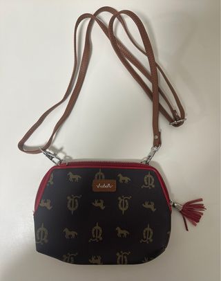 Corté la etiqueta pero nunca se ha estrenado. Bolso de piel con un bonito estampado de caballos y herraduras. - Diseño con cremallera superior. - Correa ajustable para llevar al hombro o cruzado.