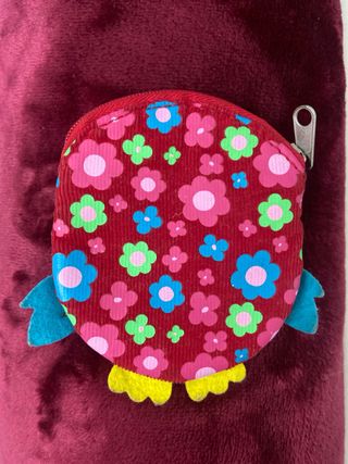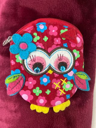 Adorable cartera con forma de búho, perfecta para llevar tus monedas o pequeños objetos. Su diseño alegre y colorido la hace destacar. - Diseño de búho. - Estampado floral. - Detalles bordados y de fieltro. - Cierre de cremallera.