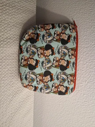 Neceser con estampado de Mafalda y sus amigos. Ideal para llevar tus esenciales. - Diseño divertido y colorido. - Cierre de cremallera.