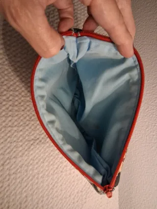 Bolso de mano con un diseño único y detalles encantadores. - Estampado de corazones en toda la tela. - Compartimentos frontales con cremallera. - Adornos metálicos en forma de corazón. Está nuevo sin usar ya que fue un regalo de cumpleaños equivocado.