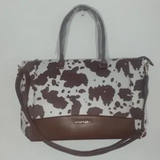 Bolso de mano y bandolera con un llamativo estampado. - Diseño de manchas blancas y marrones. - Asa superior y correa ajustable. - Detalle de logo en la parte frontal.
