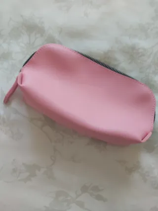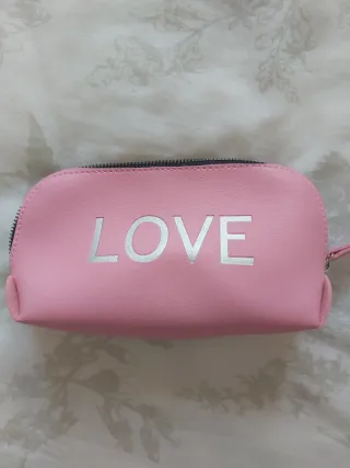 Neceser de color rosa con la palabra LOVE estampada en plateado. Tamaño pequeño-mediano. Perfecto para llevar tus cosas en el bolso o tu maquillaje.