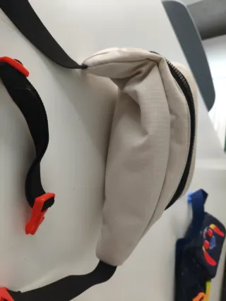 Mochila Kaos de la marca Tous. - Diseño con estampado. - Cierre de cremallera. - Bolsillo exterior con cremallera. La mochila está en perfecto estado excepto la costura del lateral que se ve en la foto que se ha abierto.