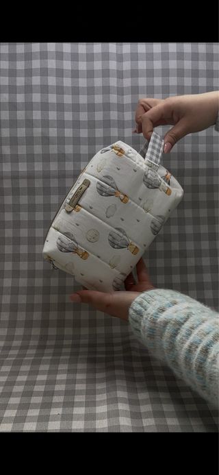 Neceser artesanal hecho a mano con mucho mimo 🤍 Ideal para llevar pañales, toallitas, productos de bebé o usar como neceser de viaje. Tamaño S-M ✨ Hecho con telas de calidad ✨ Acolchado y resistente ✨ Cremallera y asa lateral ✨ Pieza única, no hay dos iguales. Un lado de cuadros vichy grises y el otro del estampado que sale en la imagen. Perfecto como regalo de nacimiento, baby shower o para darte un capricho bonito y práctico. Si te interesa o quieres ver más modelos, escríbeme sin compromiso 😊