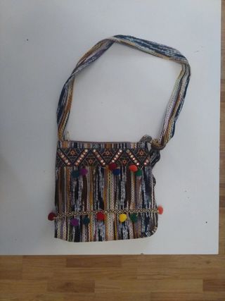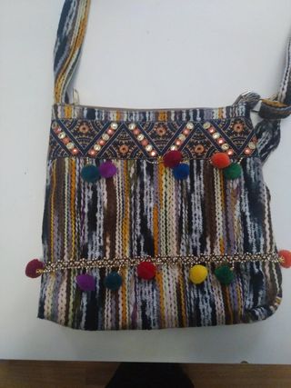 En perfectas condiciones. Con cremallera. Bolso de lana con estampados bordados