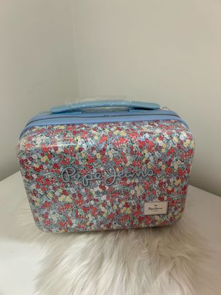 Neceser Pepe jeans con estampado floral 29 cm x 21 cm x 15 cm fabricado en ABS. Está totalmente nuevo, pero en la cremallera trae un hilo suelto. La cremallera abre bien aunque tenga el hiloa.