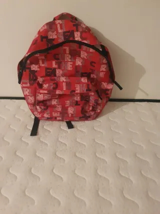 Mochila con un llamativo estampado de letras en tonos rojos y blancos. Perfecta para el día a día. - Diseño moderno y juvenil. - Compartimento principal espacioso. - Bolsillo frontal adicional.