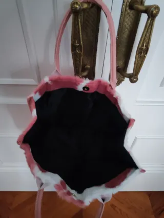 Bolso peludo rosa y blanco