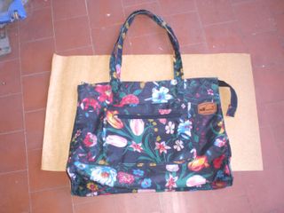 Bolso reversible con un bonito estampado. -Imán - Diseño floral y de postales antiguas. - Asas de tela resistentes.