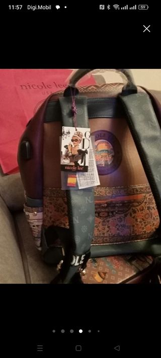 Preciosa mochila Nicole Lee, ideal para el día a día. Tiene un diseño único con estampados de Capadocia, Turquía. Es espaciosa y cómoda de llevar. - Incluye un bolsillo frontal con cierre. - Diseño con detalles de piedras. - Asa superior para llevarla en la mano.