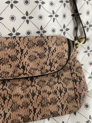 Bolso con un llamativo estampado de serpiente. - Diseño con solapa. - Cierre de cremallera. - Correa ajustable.