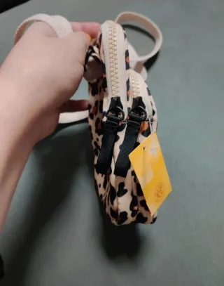Precioso bolso bandolera de leopardo, ideal para llevar el móvil u otros objetos pequeños. - Diseño estampado de leopardo en tonos beige y marrón. - Correa ajustable para llevarlo al hombro o cruzado. - Dos departamentos individuales con cremallera. - Nuevo con etiqueta. #bolso #regalo #oferta #rebaja #merkal #portamovil #leopardo #nuevo #etiqueta