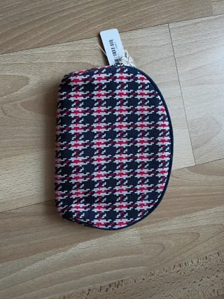 Neceser de Sisley con un llamativo estampado. - Diseño de pata de gallo en negro, blanco y rojo. - Cierre de cremallera.