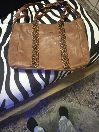 Bolso grande marrón con estampado animal