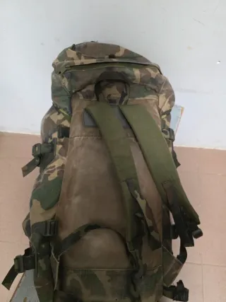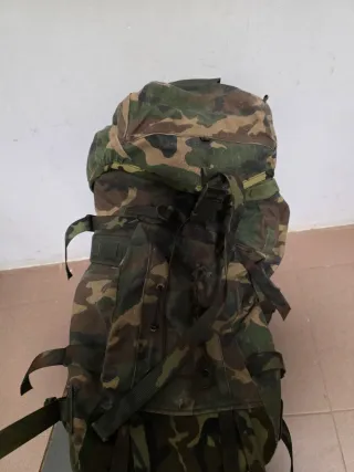 Mochila de estilo militar con estampado de camuflaje. - Diseño robusto y funcional. - Correas ajustables para mayor comodidad. - Compartimentos versátiles para organizar tus pertenencias.