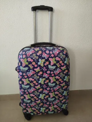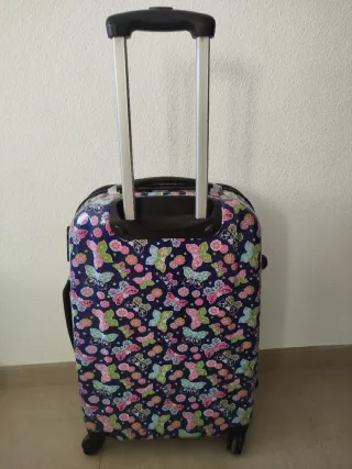 Maleta mediana con un divertido estampado de mariposas en tonos azules y multicolor. Perfecta para tus viajes. - Diseño con mariposas. - Ruedas para facilitar el transporte. - Asa extensible.