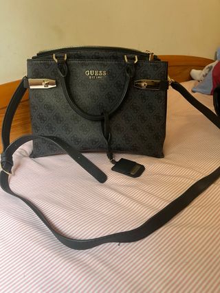 Bolso de mano y bandolera de la marca Guess. - Diseño con estampado integral. - Detalle de logo metálico. - Cierre de cremallera. - Incluye asa corta y correa larga ajustable.