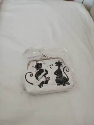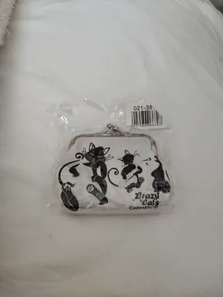 Monedero con un divertido diseño de gatos tocando jazz. Ideal para llevar tus monedas o pequeños objetos. - Cierre de boquilla metálica. - Estampado de gatos en blanco y negro.