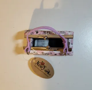 Este monedero presenta un diseño inspirado en Nueva York con un estampado de corazones y dibujos de la ciudad. - Cierre de broche metálico. - Asa corta de color lila. - Estampado con New York, la Estatua de la Libertad, el Empire State Building y el Puente de Brooklyn.
