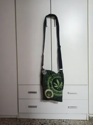 Bolso bandolera unisex con diseño original. - Estampado con motivos de Amsterdam y hoja de cannabis. - Parche circular con hoja de cannabis. - Cierre de cremallera. - Correa ajustable.bolsillos delantero trasero y interior con cremallera