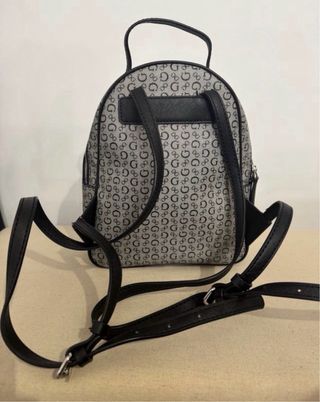 Mochila con un diseño moderno y práctico, perfecta para el día a día. Presenta un estampado distintivo de la marca. - Estampado GG característico de Guess. - Bolsillo frontal con cremallera. - Asa superior y correas ajustables. Solo tiene un desperfecto que esta en la asa delantera como de observa en la imagen.