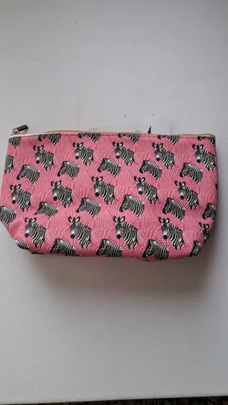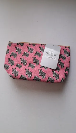 Neceser de la marca Angela con un divertido estampado de cebras sobre fondo rosa. - Diseño con cremallera. - Estampado de cebras. - Color rosa y negro.
