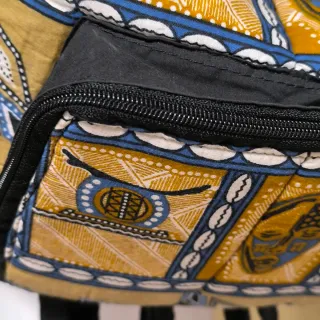 Mochila con estampado africano. Mochila con un diseño llamativo y original. - Estampado tribal multicolor. - Cierre de cremallera. - Bolsillo frontal con cremallera.