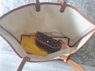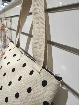 Bolso de gran capacidad con un diseño estampado. - Tonos beige y marrón. - Diseño geométrico.