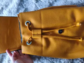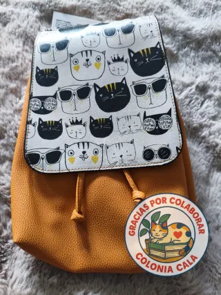 Mochila original marca Dogo - Solapa con estampado de gatos. - Cierre de cordón. - Color mostaza - Dispones de más artículos en nuestro escaparate solidario. Todo lo recaudado va destinado a gestionar la Colonia Cala