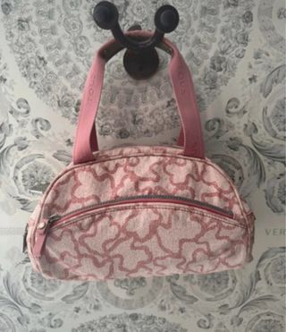 Bolso de la marca Tous con un diseño estampado. - Color rosa. - Estampado de ositos. - Cierre de cremallera.