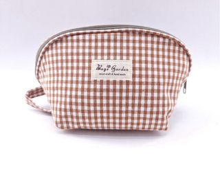 Este neceser está confeccionado en algodón con estampado vichy, un tejido suave y ligero ideal para el uso diario. Su diseño incluye cierre superior con cremallera, forro interior y un espacio amplio para organizar maquillaje, artículos personales, productos de viaje o accesorios pequeños. Disponible en tres colores encantadores: rosa, negro y verde, combina estilo clásico y funcionalidad en un tamaño práctico para llevar en el bolso o la maleta.