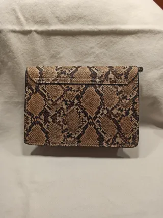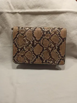 Elegante bolso bandolera con un llamativo estampado. - Diseño tipo piel de serpiente. - Tonos beige y marrón. - Asa para colgar. Nunca se ha usado, siempre guardado en armario. Para estrenar. No negociable.