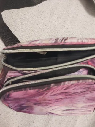 Bandolera con un diseño moderno y práctico. - Estampado distintivo en toda la superficie. - Cremallera frontal para acceso rápido. - Correa ajustable para mayor comodidad. -nuevo sin usar