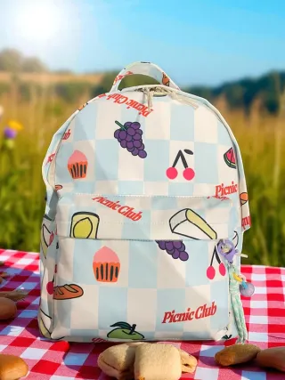 Esta mochila combina estilo y funcionalidad con un diseño encantador de frutas y pastelitos. Ideal para llevar tus imprescindibles diarios, con un toque alegre y colorido. Perfecta para aventuras al aire libre o para darle un aire fresco a tu día a día. ¡Hazla tuya y lleva la esencia del picnic a donde quiera que vayas!