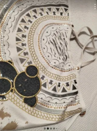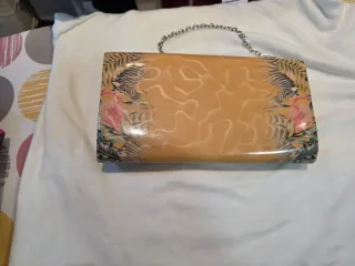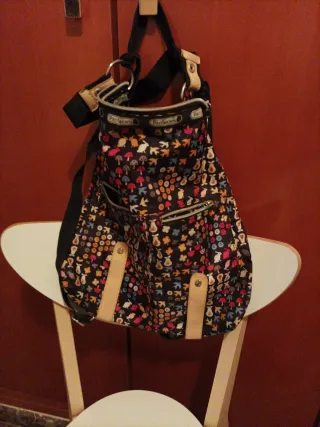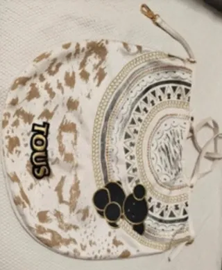 Bolso de la marca Tous con un diseño llamativo. - Estampado animal print en tonos beige. - Detalle de abalorios negros. - Adorno con el logo de la marca. - Tribales en la parte frontal. Bolso de tela de Original de Tous,cierre co ciierre con aplique.ancho 42cm ancho,420cm alto.Revisad las fotos porque en la última foto se ve el desgaste que tiene.