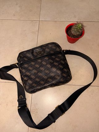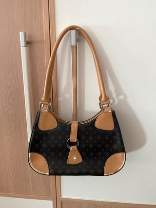 Bolso bandolera con un diseño estampado distintivo. - Estampado de monograma en tonos marrones y negros. - Correa ajustable para llevar cruzado o al hombro.