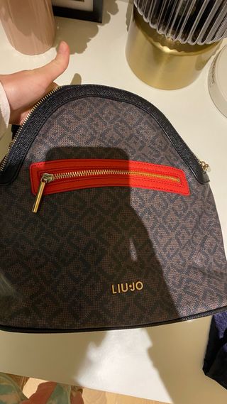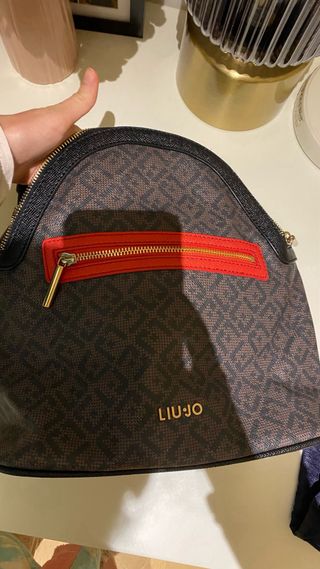 Mochila Liu Jo con un diseño moderno y llamativo. - Estampado monograma en tono marrón. - Detalle de cremallera frontal en color rojo. - Logo de la marca en dorado.